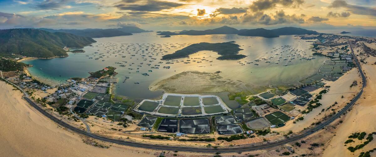 Fishermen navigate colourful boats through Dam Mon's emerald waters while visitors explore the pristine beaches and sample fresh seafood. Hike up nearby hills for panoramic views of Van Phong Bay or arrange boat trips to the untouched coral reefs teeming with marine life.