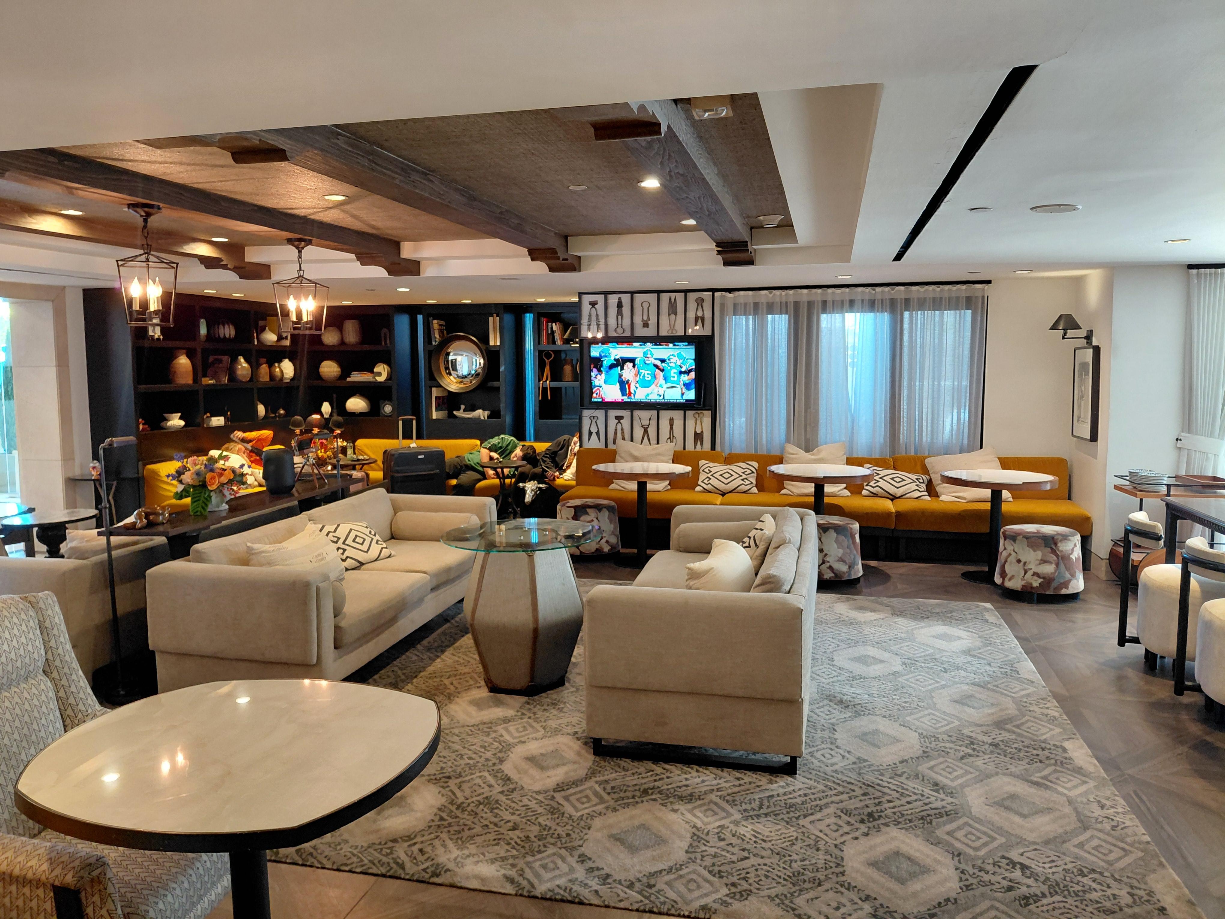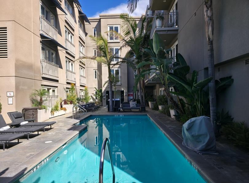 Hotel Amarano Burbank - Hollywood, near Warner Brothers Studio, offers a tranquil escape with a serene garden. Guests enjoy continental breakfast, relax in the spa tub, swim in the outdoor pool with sun loungers, and dine at FYC Kitchen & Bar.