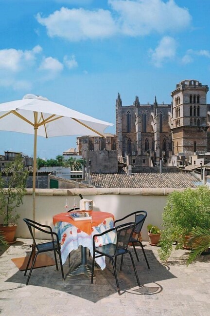 Travelers balance relaxation and adventure at this Palma de Mallorca retreat, where rooftop views complement energizing workout options