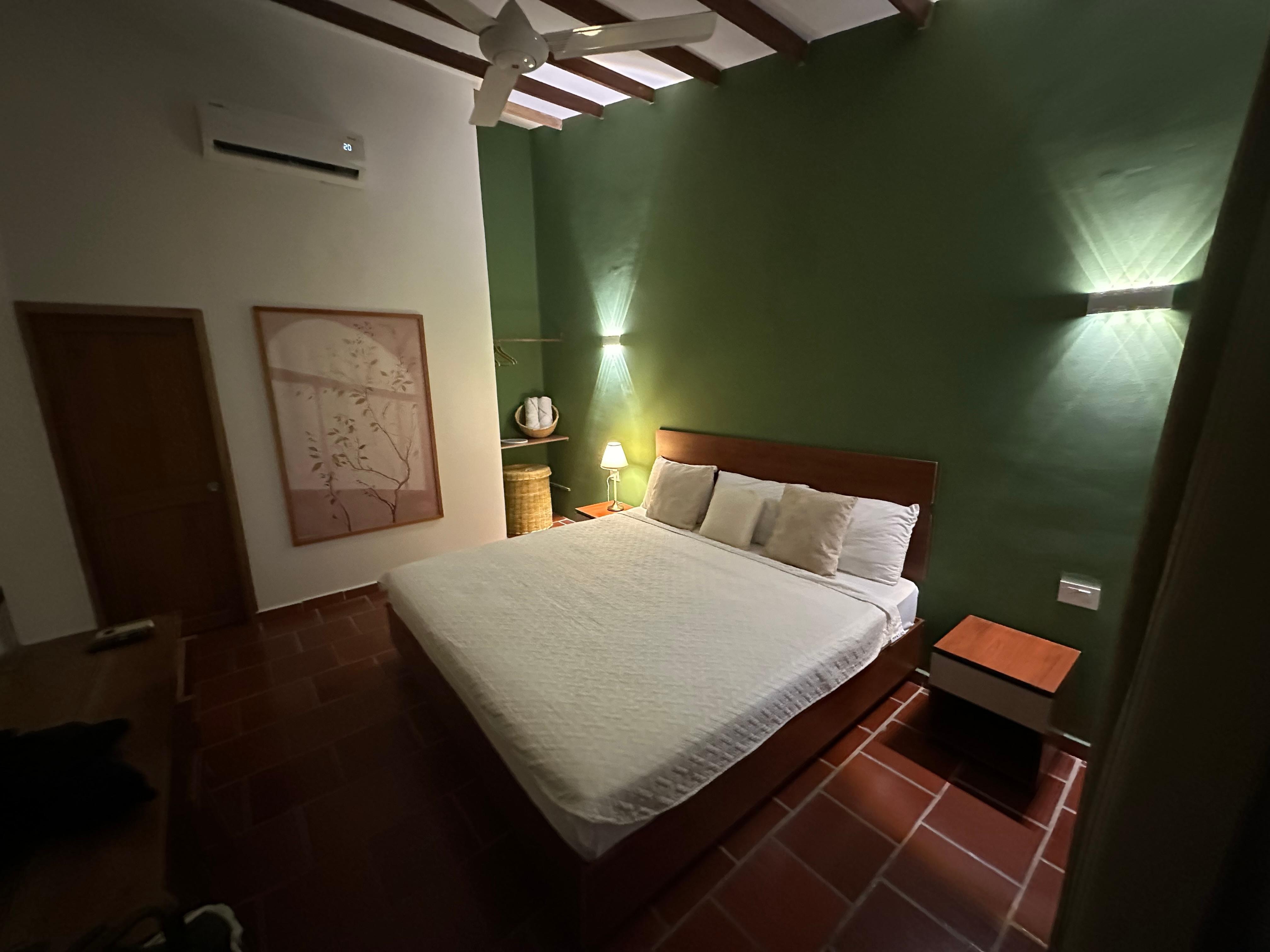 The room was very modern, the A/C worked great, and the hotel itself is stunningly gorgeous. It’s located in a complex of converted houses with a beautiful well-maintained garden with animals. I thought the room was clean although I wish the room had a bit more lighting. The breakfast was also varied and fresh every day! I would definitely recommend staying here and will likely be back.