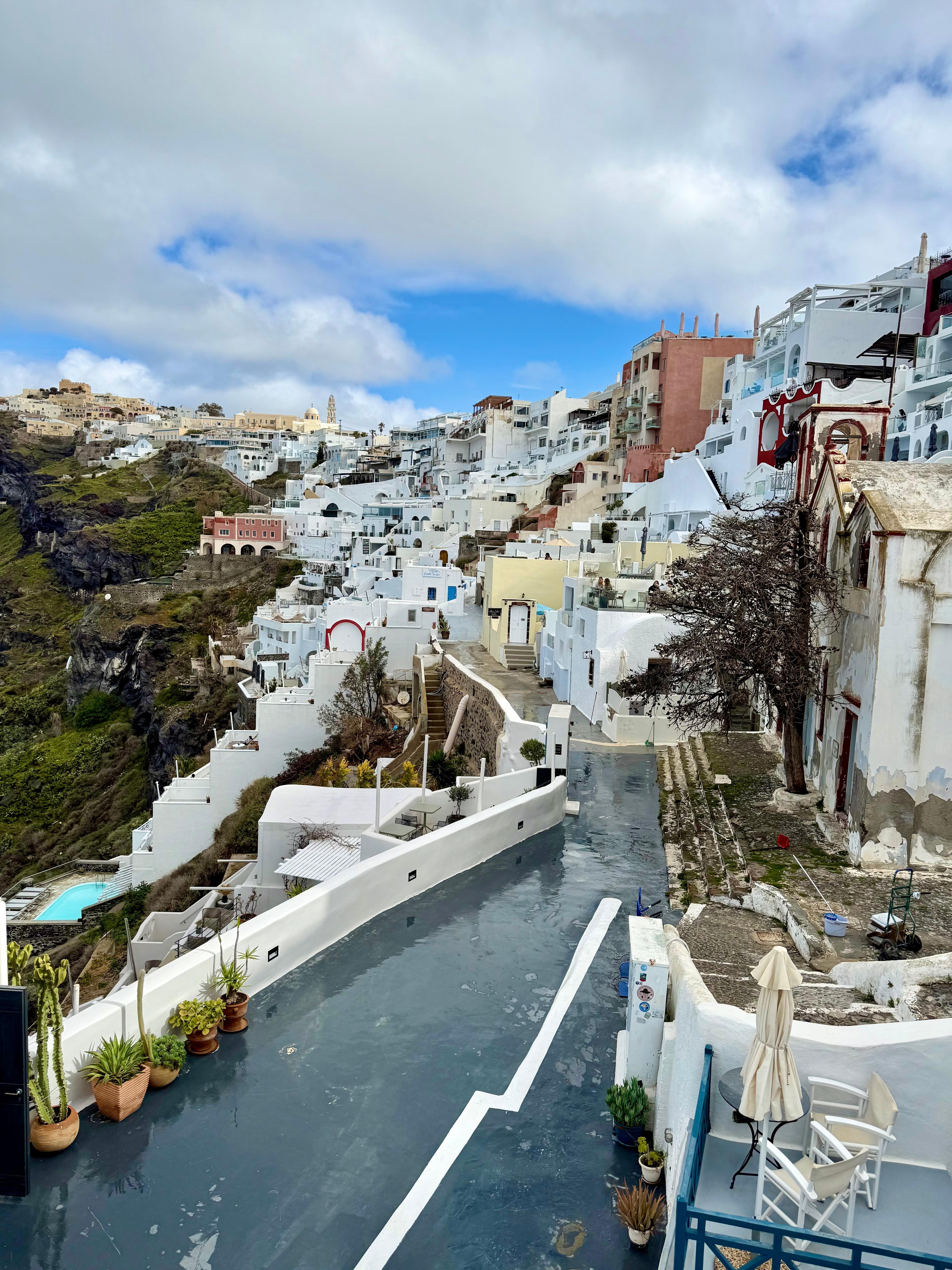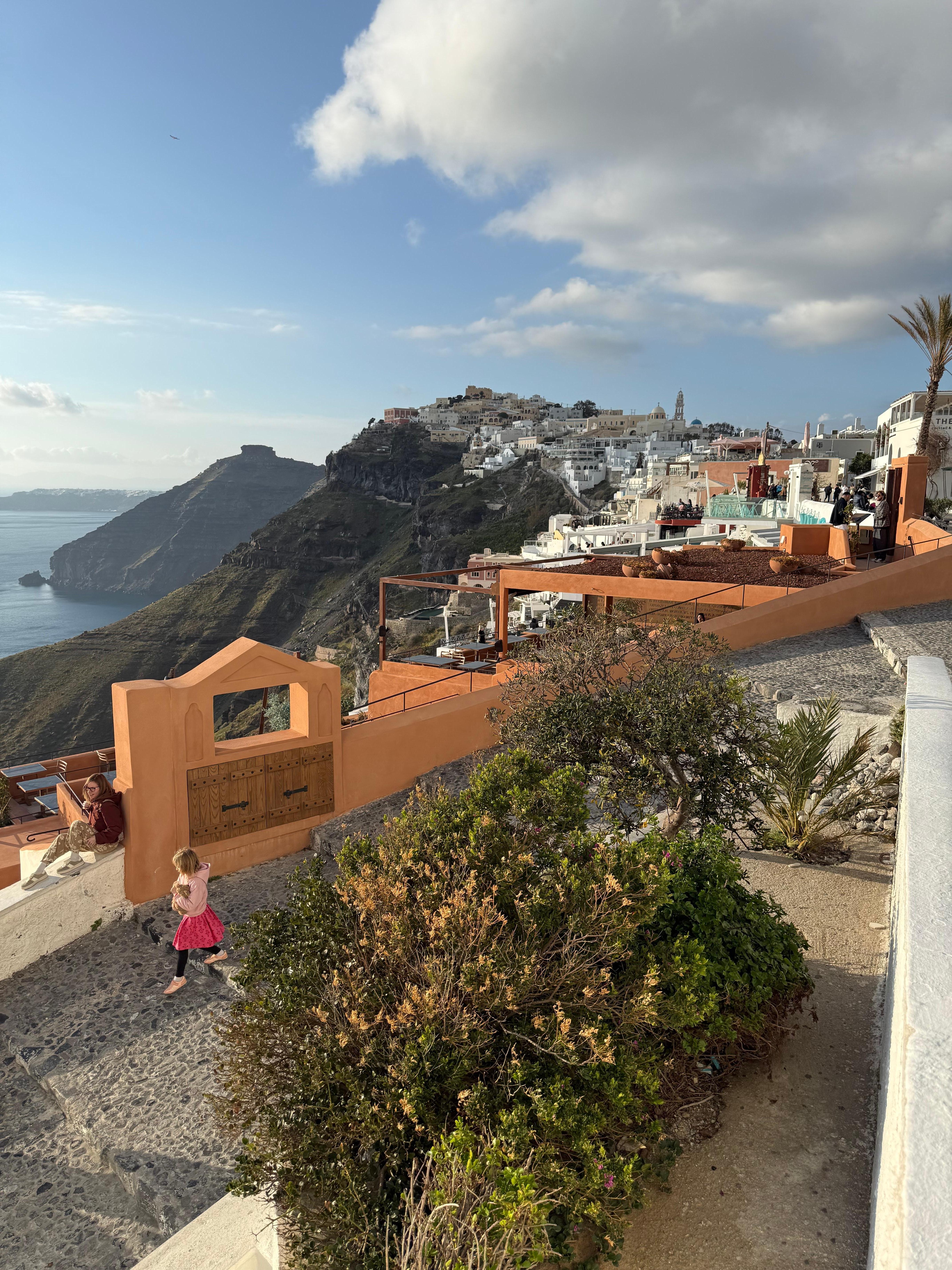 Firalia is a cliff side property with stunning views . The steps up to the shops and the center of town are right next to it.