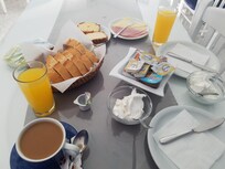 No one was expecting us so no reception and not properly checked in. The duty caretaker, Mr Yannis, (owners family) a while to sort out the shambles as there was no one on site who could speak English. The place had few guests but the rooms we were offered were horrendous. Dull, dingy and double beds despite the fact we were 4 women and had requested twins. The next rooms offered were a good deal better but a bad smell from the drains pervaded the air in one room. There was no hot water or showers except for a brief hour about 9am. The chocked drains made the bathroom flood when we I’d get hot water. The rooms were a bit chilly and the blow heating would not heat. The hotel itself was very nice out with the rooms. Breakfast was plain but nice. Coffee (1 cup) juice ( 1 glass) sliced cheese and ham, bread, cake and preserves. All served by Mr Yannis who was very diligent and tried his best. We can not fault him in any way. When a anagram did arrive on our second last day there was no apology for our shambolic treatment on arrival, only a complaint that she had had a request for payment declined by the card used to make the original booking. I was furious and pointed out that she had no authority to make such a request and if someone had bothered to turn up Jen we arrived that would have been dealt with. This hotel reception was deserted every night and had we arrived in the evening instead of the afternoon we would have been without accommodation. Not good enough. S