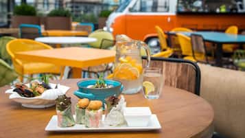 The hotel is beautiful. The property is lovely and the proximity next to Gino Paradise was wonderful for some serious waterslide and wave pool fun! The staff were friendly and helpful. We also loved the way the staff treated the neighbourhood cats and dogs- always petting them and giving them treats and being kind. The hotel could use a pop machine but the availability and affordability of room service and taxis using the Bolt app made it a non-issue. The beds are comfortable, the rooms have a lot of nice features that really feel “extra” such as a heated drying rack, a kitchenette in standard rooms, bidet, and air conditioning. The swimming pool is nice- refreshing (read: quite chilly). As Canadians, we didn’t mind; we enjoyed cold plunges and swims even during a rain storm at night! The breakfast buffet is okay. There are a variety of items, but the breads and croissants are stale each day, labelling is odd, and there are very few things you would normally have in a breakfast buffet in Europe or North America. They had what they called “French Toast” but it was not French Toast. It was not dipped in egg or pan fried. It was just toasted, rock hard, and sprinkled with a little