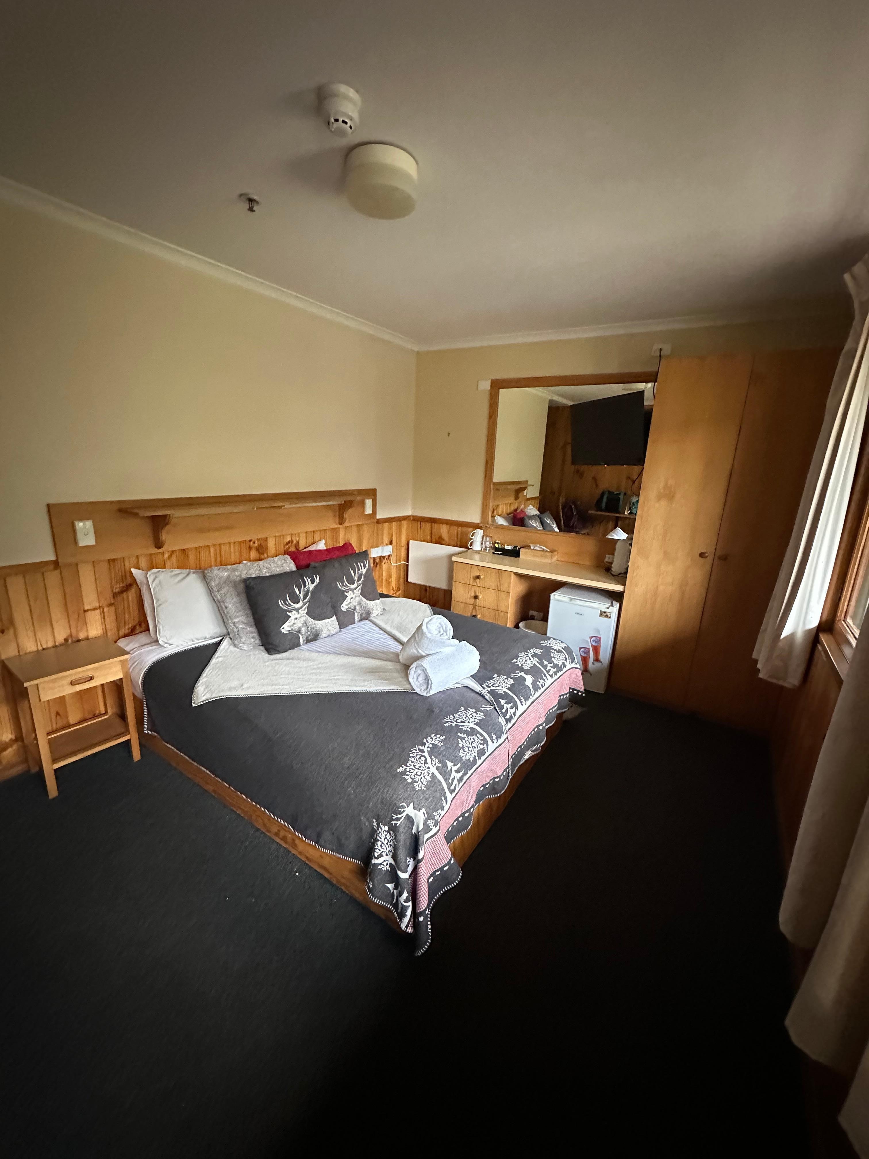 Great cosy place to stay, loved the older style, it had everything available and was clean , bus stop right out the front. Beautiful view of mountain. Beds were very comfy. Bathroom modern and nice and clean, with a bath! Heater in rooms. Staff were friendly and accommodating. We would definitely stay again.
