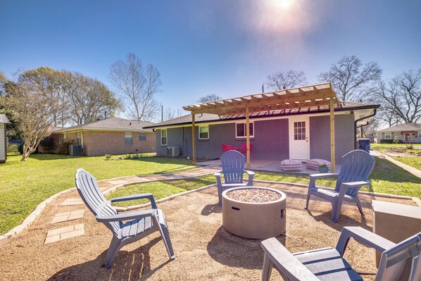 Pet-friendly Tomball Cottage: Steps to Downtown! provides amenities, such as a firepit and a playground. Stay connected with free WiFi in public areas.